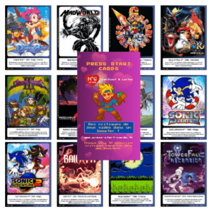 Press Start Cards est le 1er magazine de jeux vidéo à collectionner ! Au programme 30 nouvelles carte chaque mois réparties dans des boosters de 8 carte. Chaque carte est un test, une critique d’un jeu vidéo rétro ou actuel.